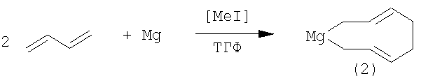 Предлагаемое изобретение относится к области магнийорганического синтеза, конкретно к способу получения 11,12-диалкил-10-магнезабицикло[7.3.01,9]додека-8,11-диенов общей формулы (1):