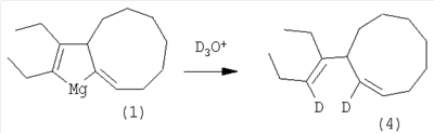 , м.д.) 1-дейтеро-9-[(Z)-2-дейтеро-1-этилбутенил]-1-циклононен (4): 13.97, 14.52, 20.81, 23.35, 24.62, 26.04, 26.30, 26.77, 27.29, 32.72,42.85, 128.11, 144.62.