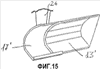 Фиг.13 представляет собой вид спереди ковша погрузчика по фиг.12 в закрытом положении, и фиг.14 представляет собой вид спереди ковша погрузчика по фиг.12 в открытом положении. Фиг.15 представляет собой вид в перспективе, показывающий только жесткую конструкцию 17 ковша погрузчика с одним подвижным элементом 13′. Цифра 24 обозначает стрелу погрузчика, к которой присоединяется рама 10′.
