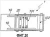 На фиг.10 показаны задние направляющие 21 и 23 и поршень 16, вид сзади.