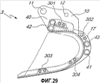 На фиг.28-33 показан большой ковш экскаватора, в целом обозначенный цифрой 3, отличающийся наличием четырех пар приводных цилиндров или поршней, обозначенных цифрами 301, 302, 303 и 304 соответственно. Как показано на фигуре 29, пара приводных цилиндров или поршней 303, 304 закреплена на ребре жесткости, выполненном заодно с неподвижной конструкцией 17 и расположенном в вертикальной плоскости симметрии неподвижной конструкции 17.