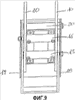 На крыле 18 подвижного элемента 13 выполнены отверстия 30 и 31 для прохода направляющих 20 и 21, а на крыле 19 подвижного элемента 14 выполнены отверстия 32 и 33 для прохода направляющих 22 и 23. Одинаковые соответствующие отверстия 40, 41, 42, 43 выполнены на неподвижной конструкции 17, которая показана на фиг.1.