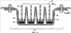 9. Система дополнительной обработки выхлопных газов по п.7, в которой окна выполнены таким образом, что проемы окон идут от среднего проточного канала в направлении змеевика и заканчиваются в непосредственной близости от змеевика, за счет чего предотвращен повторный вход летучих частиц, вызванный завихрениями.