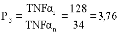 где P1 – величина относительного содержания IL-1 P2 – величина относительного содержания IL-4; Р3 – величина относительного содержания TNF P4 – величина относительного содержания P5 – величина относительного содержания диеновых конъюгатов; Р6 – величина относительной антиоксидантной активности, и при значении коэффициента, равном 2,5 и выше, прогнозируют развитие гнойно-воспалительных осложнений.