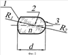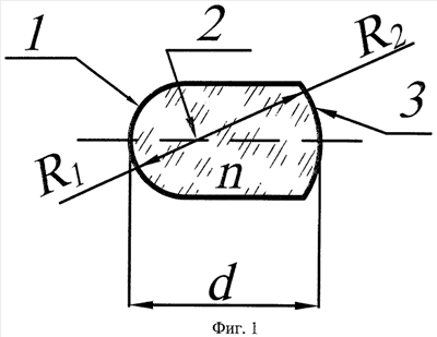 На фиг.1 приведена оптическая схема световозвращающего элемента для моделирования отражательных характеристик светового, в том числе лазерного, излучения по п.1, где 1 – первая (входная) поверхность элемента с радиусом кривизны R1; 2 – центр кривизны первой и второй сферических поверхностей; 3 – вторая (отражающая) поверхность с радиусом кривизны R2; d – толщина элемента по оси, n – показатель преломления материала.
