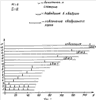 На фиг.1 и 2 представлена функциональная схема устройства для оценки и сравнивания эффективности функционирования однотипных организаций (для ликвидации громоздкости связи между распределителем импульсов и управляющими входами соответствующих блоков показаны не полностью, а обозначены путем нумерации входов и выходов); на фиг.3 изображена циклограмма работы заявленного устройства (по оси ординат обозначены номера выходов распределителя импульсов, а по оси абсцисс – число тактов, причем длительность различных вычислительных операций (сложения и вычитания – один такт, возведения в квадрат – восемь тактов, извлечения квадратного корня – двадцать тактов) – в верхней части фиг.3 (для возможности исполнения циклограммы принятого S=6, M=4, хотя эти величины могут принять произвольные значения).
