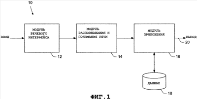 Результаты частичного семантического анализа, которые обычно включают в себя текст для принятого ввода (или другие данные, указывающие текст ввода), а также выявленную семантическую информацию, поступают на модуль 16 приложения, который может принимать многообразные формы. Например, в одном варианте осуществления модуль 16 приложения может представлять собой электронную записную книжку (ЭЗК) и использоваться для отправки, получения сообщений электронной почты и ответа на них, организации встреч и т.п. Таким образом, пользователь может выдавать звуковые команды для выполнения этих задач. Тем не менее важнее то, что модуль 16 приложения может обеспечивать интерактивную обратную связь и/или выполнять действия над информацией результатов частичных семантических анализов по мере их поступления, тем самым обеспечивая пользователя высокоинтерактивным интерфейсом для модуля 16 приложения. Например, при работе в чисто голосовом режиме выход 20 может содержать слышимые утверждения, обращенные к пользователю, хотя, конечно, возможно выполнение других задач, относящихся к приложению. Частичные семантические анализы (результаты) или семантические объекты можно использовать для выполнения диалоговой логики в приложении. Например, диалоговая логика может представлять пользователю опцию или совокупность или список опций на основании одного или более семантических объектов.