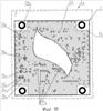 на фиг.10 – фрагмент рисунка печати седьмого проводящего слоя (вид со стороны первого слоя, слои условно прозрачные);