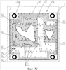 на фиг.16 – фрагмент рисунка печати тринадцатого проводящего слоя (вид со стороны первого слоя, слои условно прозрачные);