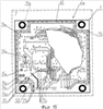 на фиг.15 – фрагмент рисунка печати двенадцатого проводящего слоя (вид со стороны первого слоя, слои условно прозрачные);