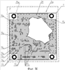 на фиг.9 – фрагмент рисунка печати шестого проводящего слоя (вид со стороны первого слоя, слои условно прозрачные);