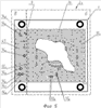 на фиг.5 – фрагмент рисунка печати второго проводящего слоя (вид со стороны первого слоя, слои условно прозрачные);