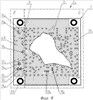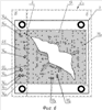 на фиг.8 – фрагмент рисунка печати пятого проводящего слоя (вид со стороны первого слоя, слои условно прозрачные);