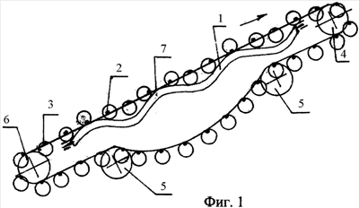 В том случае, когда частота вращения встряхивателя 7 обеспечит одинаковые скорости волны и полотна 1, вращение трубок 3 вокруг прутка 2 прекратится, что приведет к уменьшению воздействия на почвенный пласт, улучшит транспортирующую способность.