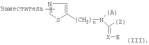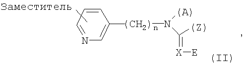 где R означает атом водорода, незамещенные или замещенные остатки из группы ацильная, алкильная, арильная, арилалкильная, гетероарильная, гетероарилалкильная или гетероциклилалкильная группа; А означает монофункциональную группу из ряда атом водорода, ацильная, алкильная, арильная группа или означает бифункциональную группу, которая связана с остатком Z; Е означает электроноакцепторный остаток; Х означает остатки -СН= или =N-, причем остаток -СН= может быть связан с остатком Z вместо атома водорода; Z означает монофункциональную группу из ряда алкильная группа, группы -O-R, -S-R, -NR2, причем R означает одинаковые или разные остатки и имеет приведенное выше значение, или Z означает бифункциональную группу, которая связана с остатком А или с остатком X. Особое предпочтение отдается соединениям формулы (1), в которой остатки имеют следующее значение: R означает атом водорода, а также незамещенные или замещенные остатки из ряда ацильная, алкильная, арильная, арилалкильная, гетероарильная, гетероарилалкильная, гетероциклилалкильная группа. В качестве ацильных остатков следует назвать формильную группу, алкилкарбонильную группу с числом атомов углерода в алкильном остатке от одного до восьми, арилкарбонильную группу с числом атомов углерода в арильном остатке от шести до десяти, алкилсульфонильную группу с числом атомов углерода от одного до восьми, арилсульфонильную группу с числом атомов углерода от шести до десяти, алкиларилфосфорильную группу с числом атомов углерода в алкильном остатке от одного до восьми и с числом атомов углерода в арильном остатке от шести до десяти, которые, в свою очередь, могут быть замещены. В качестве алкильной группы следует назвать алкильную группу с числом атомов углерода от одного до десяти, в частности алкильную группу с числом атомов углерода от одного до четырех, например метильную, этильную, изопропильную, вторбутильную или третбутильную группу, которые, в свою очередь, могут быть замещены. В частности, арильная группа представлена арильной группой с числом атомов углерода от шести до десяти, в качестве примеров следует назвать фенильную, нафтильную группу, в частности фенильную группу. В частности, арилалкильная группа представлена арилалкильной группой с числом атомов углерода в арильном остатке от шести до десяти и в алкильном остатке от одного до четырех, в качестве примеров следует назвать фенилметильную, фенилэтильную группу. В качестве гетероарильной группы следует назвать гетероарильную группу с числом атомов в цикле до десяти и с атомами азота, кислорода, серы, в частности азота, в качестве гетероатомов. Например, следует назвать тиенильную, фурильную, тиазолильную, имидазолильную, пиридильную, бензтиазолильную группу. В частности, гетероарилалкильная группа представлена гетероарилалкильной группой с числом атомов углерода в алкильном остатке от одного до четырех, причем определение гетероарильной группе дано выше. В качестве примеров следует назвать гетероарилметильную, гетероарилэтильную группу с числом атомов в цикле до шести и с атомами азота, кислорода, серы, в частности азота, в качестве гетероатомов. В частности, гетероциклильная группа представлена ненасыщенным, но не ароматическим, или насыщенным гетероциклом с числом атомов в кольце до шести, содержащим до трех г