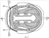 Передняя и задняя части 12, 14 соответственно (более конкретно, передний и задний корпуса 16, 18 соответственно) могут двигаться относительно друг друга для регулирования размера полости шлема 10 в соответствии с размерами головы пользователя. Левый и правый стопорные механизмы 50, 52 соответственно удерживают переднюю и заднюю части 12, 14 в положении, выбранном пользователем. Без отклонения от сущности настоящего изобретения может быть использован любой пригодный тип стопорных механизмов, например стопорный механизм, описанный в патенте США №5956776, выданный 28 сентября 1999 года компании Bauer Nike Hockey Inc.