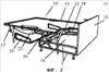 9. Диван-кровать с похожим по форме на параллелепипед неподвижным каркасом и несколькими соединенными между собой подвижными рамами, которые при поворотно-поступательном движении перемещаются из сложенного положения в разложенное плоское положение, отличающийся тем, что в нем используется механизм по любому из предыдущих пунктов.