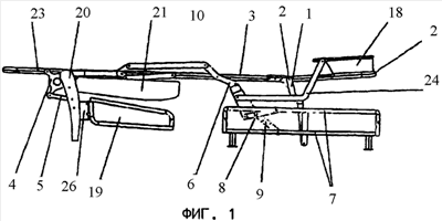 Четырехугольник (17), показанный на фиг.6 и состоящий из рычагов (4), (5), части рычага (25) и части рычага (23), предназначен для перемещения подушек (21) сиденья.