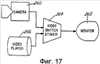 Фиг.17 – схема иллюстративной операции коммутации между изображением с камеры и изображением с видеоплеера, поступающими на монитор на фиг.16.