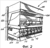 Вторым видеоисточником для монитора, на котором показывается реклама, информация для покупателя или другое содержание, может быть видеомагнитофон 266, например, кассетный видеомагнитофон, видеопроигрыватель компакт-дисков, полупроводниковый цифровой видеопроигрыватель, прямое видео, аудиопоток или другой видеоисточник. Что касается коммутатора 264, то коммутация между изображением с камеры и рекламой или другим содержанием может осуществляться аппаратным таймером или небольшим микроконтроллером. Камера 260 может быть небольшой автономной камерой, не соединенной с какой-либо частью существующей охранной системы, или она может быть любой типичной магазинной камерой наблюдения, имеющейся в охранной сети магазина. Монитор 262 может быть небольшим плоским цветным жидкокристаллическим монитором, который можно установить в различных положениях на или вблизи полки 104. Например, монитор может быть установлен на подвесной вывеске над продаваемым товаром или может быть установлен на кромке полки 104. В некоторых вариантах выполнения можно использовать большой монитор, например, ЭЛТ, плазменный, жидкокристаллический или проекционный. Предпочтительный полупроводниковый цифровой видеопроигрыватель может содержать вторичный видеоисточник. Источник может быть размещен в том же кожухе, что и монитор, или может быть удаленным от монитора.