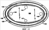 Как видно из Фиг.12 и 13, третий вариант осуществления умывальника 130 согласно настоящему изобретению имеет вогнутую чашу 132 с эллиптическим периметром, из которого выступает кольцевой ободок 134. Ободок 134 опирается на верхнюю часть стойки или на другую поверхность, на которой установлен умывальник. Умывальник 130 может быть заменен поддоном 12 для мытья, показанным на Фиг.1, чтобы принимать воду, вытекающую из выпускной трубы 18. Съемный поддон 136 имеет такую же эллиптическую форму, в общем соответствующую форме чаши 132, но немного меньше него, с тем чтобы разместиться внутри чаши.