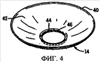 Контейнер 52 ламинарного потока имеет цилиндрический наружный корпус 64 с круглой, открытой назад выемкой 66, которая сообщается с центральным впускным отверстием 68. Уравнивающий давление дисковый регулятор 70 потока, такой как серийно выпускаемый компанией Neoperl, Inc из Уотербури, Коннектикута, США, установлен в выемку 66. При повышении давления в соединительном элементе 58 регулятор 70 сгибается, уменьшая объем центрального впускного отверстия 68. Это поддерживает расход потока через регулятор относительно постоянным, так что колебания давления в трубопроводе водоснабжения не меняют изогнутой траектории струи 22, выходящей из выпускной трубы 18. Регулятор 70 потока, предпочтительно, обладает рабочим диапазоном давлений 12-145 фунтов на квадратный дюйм (0,8-10 бар).