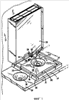 Настоящий умывальник 10 также позволяет использовать поддон 12 без чаш 14 или 16. Это позволяет пользователю полностью использовать рабочую поверхность 24 для мытья рук или других предметов. Когда чаши сняты, струя 22 воды ударяется о рабочую поверхность 24 и течет по ней к расположенному по периметру желобу 26.