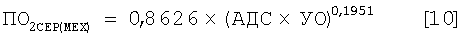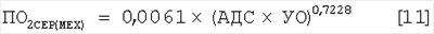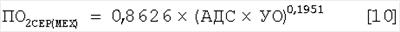 Затем через дыхательный коэффициент переводят полученную величину в мл/мин по уравнению – где 0,238845896 – коэффициент перевода джоулей в калории, а знаменатель правой части уравнения – пересчет калорий в мл газообразного кислорода по дыхательному коэффициенту RQCOR. 7. Затраты ПО2 на механическую работу сердца, оцениваемые по произведению (АДС×УО), которое является условным выражением работы правого и левого желудочков сердца, находят по уравнениям для мужчин – для женщин – где АДС – рабочая нагрузка левого желудочка, нагрузка правого желудочка дана по [Власов, Окунева, 1992; стр.89; табл.24] выражением для мужчин –