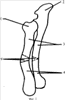 На фигуре 1 показана схема костей предплечья с вальгусной деформацией в области средней трети диафизов. На фигуре 2 показана схема устранения деформаций костей предплечья стержневым аппаратом внешней фиксации с нарушением целостности обеих костей. На фигуре 3 показана схема устранения деформаций костей предплечья стержневым аппаратом внешней фиксации с нарушением целостности одной кости.