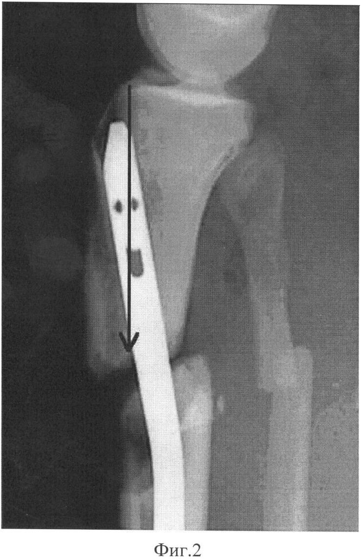 5. Способ по п.1, отличающийся тем, что для устранения антекурвации или рекурвации в дистальный отломок проводят две отклоняющие несквозные спицы во фронтальной плоскости изнутри кнаружи, а гвоздь проводят при антекурвации кпереди от проксимальной и кзади от дистальной спиц, а при рекурвации – кзади от проксимальной и кпереди от дистальной.