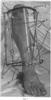 При диафизарном переломе проводят по одной спице 6 во фронтальной плоскости в проксимальный и дистальный метафизы большеберцовой кости так, чтобы проксимальная спица располагалась в задней полуокружности кости. Спицы закрепляют в дистракторе (на полукольцах 1, 2) и натягивают. По телескопичеким стержням 3 проводят дистракцию до восстановления длины сегмента. При необходимости в застарелых случаях дистракцию можно выполнять в течение нескольких дней. После достижения правильной длины или небольшого перерастяжения (0,5-1 см) коленный сустав сгибают до острого угла, в этом положении конечность удерживается за счет подставки из телескопических стержней 4 и пластины 5. При необходимости увеличить угол сгибания в коленном суставе удлиняют телескопические стержни 4 подставки, при необходимости уменьшить сгибание – укорачивают. На уровне нижнего полюса надколенника по медиальной стороне выполняют разрез 1,5-2 см. Костным шилом формируют канал для интрамедуллярного стержня (диаметр которого выбирают индивидуально). Оптимальная точка входа располагается на горизонтальной части эпиметафиза – переднем межмыщелковом поле, т.е. точка должна располагаться внесиновиально на переднем крае большеберцовой кости. После формирования канала в него вводят интрамедуллярный гвоздь. На Фиг.4 представлена схема введения интрамедуллярного гвоздя.