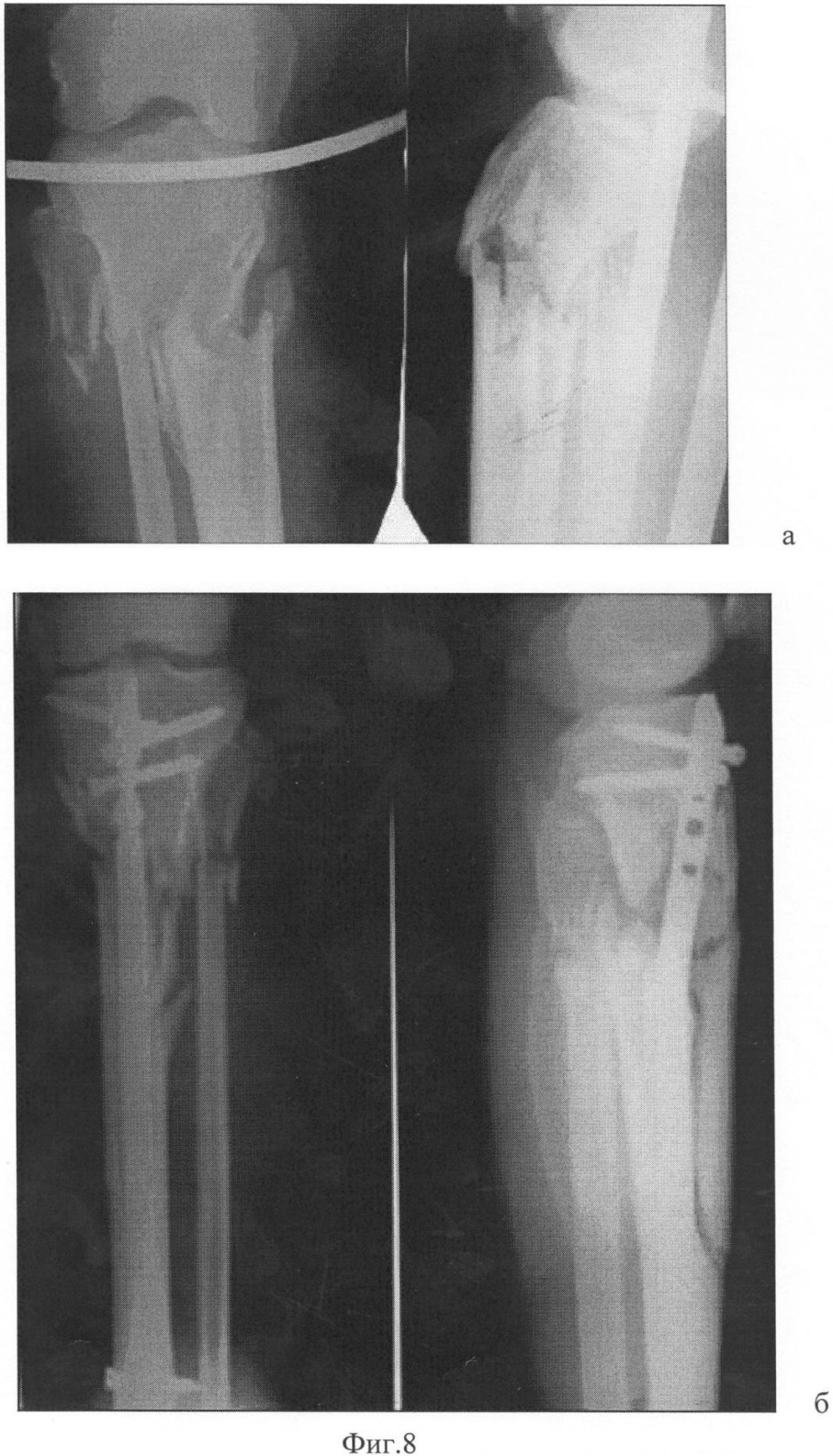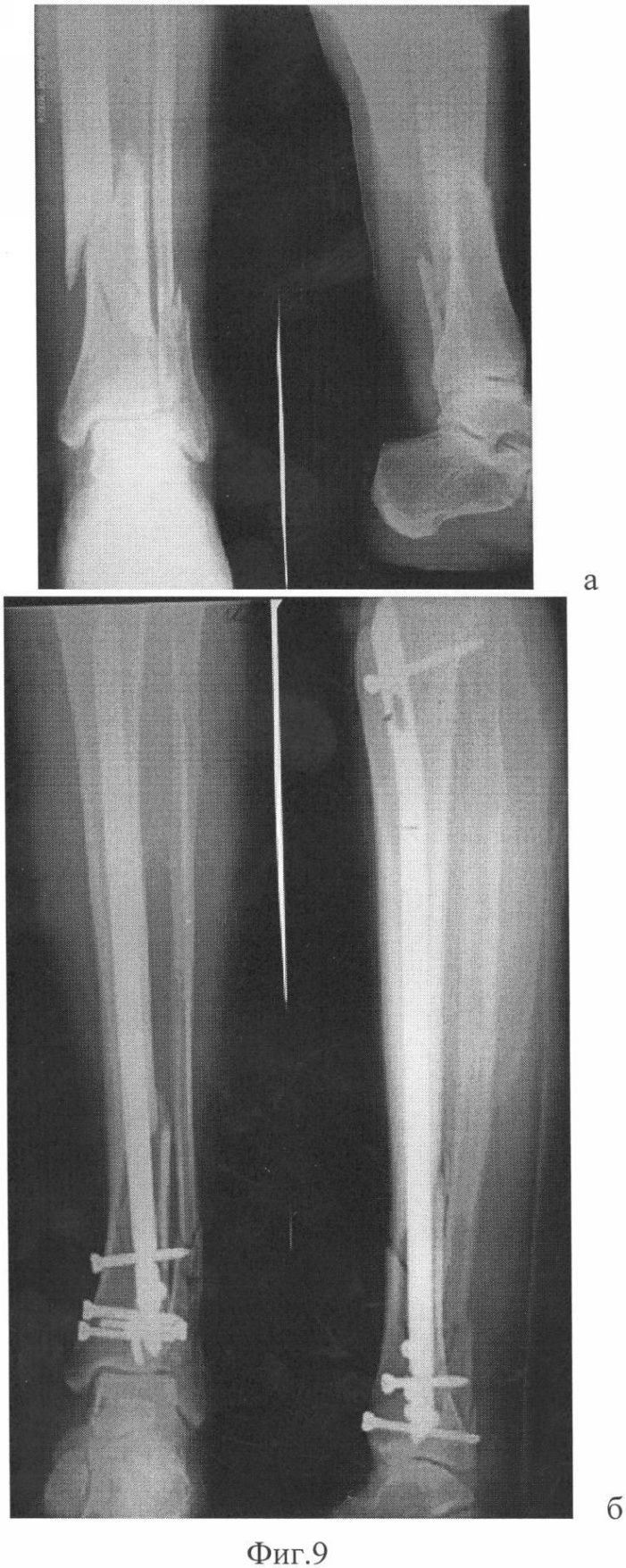 На Фиг.9 представлены рентгенограммы: а – до лечения; б – итог операции.