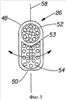 Головка 26 имеет первый свободный конец 48 и второй конец 50, который входит в зацепление с шейкой 24. Головка содержит один или несколько держателей щетины. Электрическая щетка 20 содержит два держателя щетины. Первый держатель 52 расположен рядом с первым концом 48 головки, а второй держатель 54 – рядом со вторым концом 50 головки, при этом нижние поверхности первого и второго держателей щетины соприкасаются с верхней поверхностью головки. Первый держатель 52 щетины колеблется относительно оси 56, которая по существу перпендикулярна продольной оси 58 головки 26, как это видно на Фиг.3. Второй держатель 54 щетины совершает возвратно-поступательные движения в поперечном направлении, т.е. совершает движения в направлении, перпендикулярном продольной оси головки, как это видно на Фиг.4. Несмотря на то, что изображенные на Фиг.4 движения по существу перпендикулярны продольной оси головки 26, предполагается, что держатель 54 щетины может производить и другие поперечные движения. Например, второй держатель 54 щетины может колебаться или качаться относительно оси поворота, выполненной в виде шпильки или штыря 53. Упомянутые шпилька или штырь 53 могут быть размещены в разных местах на втором держателе 54 щетины, как например, на другом его конце или в середине, что обеспечивает различные типы движения в поперечном направлении.