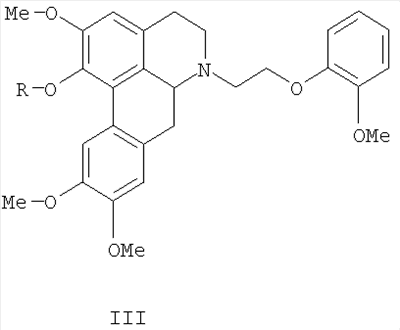 Имеются сообщения о том, что некоторые соединения способны увеличить систолию, это такие соединения, как синтетический 2-фенил-4-оксигидрохинолин (Su MJ et al., Brit. J.Pharmacol, 1993, 110:310-316), талипорфин из Lauraceae и Rutaceae (Su MJ et al., Eur.J. Pharmacol., 1994, 254:141-150), лириоденин из Fissistigma glaucescens (Chang GJ et al., Brit. J. Pharmacol., 1996, 118:503-512), (-)-кариахин из Cryptocarya chinensis (Wu MH et al., Brit.J. Pharmacol., 1995, 116:3211-3218), а также производные берберина; причем было подтверждено, что лириоденин, (-)-карахин и производные берберина обладают антиаритмической способностью. Обычно антиаритмическую способность оценивают в модели на изолированном сердце крысы, это делают, вызывая сердечную аритмию путем перевязки на 30 мин сосудов и последующей реперфузии. Однако внешний ток K+, выявляемый у других животных, слегка отличен от тока в случае крысы. Поэтому в таких испытаниях для того, чтобы продемонстрировать указанную разницу во внешнем токе K+, были использованы также морские свинки. Помимо этого, исследованиями Su et al. было показано, что талипорфин обладает способностью увеличивать систолию, а также внутренние токи Са2+. Из-за усиления систолии лекарственные средства, имеющие такие функции, непригодны при ишемическом некрозе миокарды и теоретически они бесполезны в лечении инфаркта миокарды и аритмии. Однако настоящее изобретение показывает, что талипорфин и его производные, в особенности в малых дозах, полезны для лечения и/или профилактики заболеваний сердца.