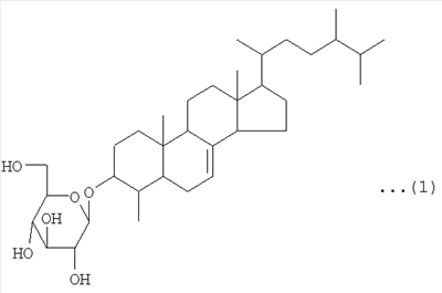 Соединение, используемое в качестве активного ингредиента лекарственного средства и пищевого продукта или напитка по данному изобретению (далее в данном документе упоминаемого как «соединение по данному изобретению»), представляет собой соединение, имеющее структуру, представленную вышеупомянутой химической формулой (1), то есть, 3-O- -D-глюкопиранозил-4-метил-эргост-7-ен-3-ол. То есть, соединение по данному изобретению имеет структуру, образованную дегидратированием и конденсацией с участием гидроксильной группы в 3-м положении 4-метил-эргост-7-ен-3-ола и гидроксильной группы в 1-м положении D-глюкозы.
