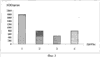 Фиг.3. – результаты эксперимента по стимуляции, используя мышей Balb/с с БЦЖ, введенной интраназально. Значения представляют собой среднее числа КОЕ/орган, посчитанного для каждой изучаемой группы. Животные из группы 1 (положительный контроль) инокулировали интраназально БЦЖ, животных групп 2 и 3 инокулировали интраназально и внутрибрюшинно соответственно человеческим гаммаглобулином до “стимулирования” БЦЖ, введенной интраназально. Группу животных 4 инокулировали интраназально БЦЖ, проинкубированной с человеческим гаммаглобулином.
