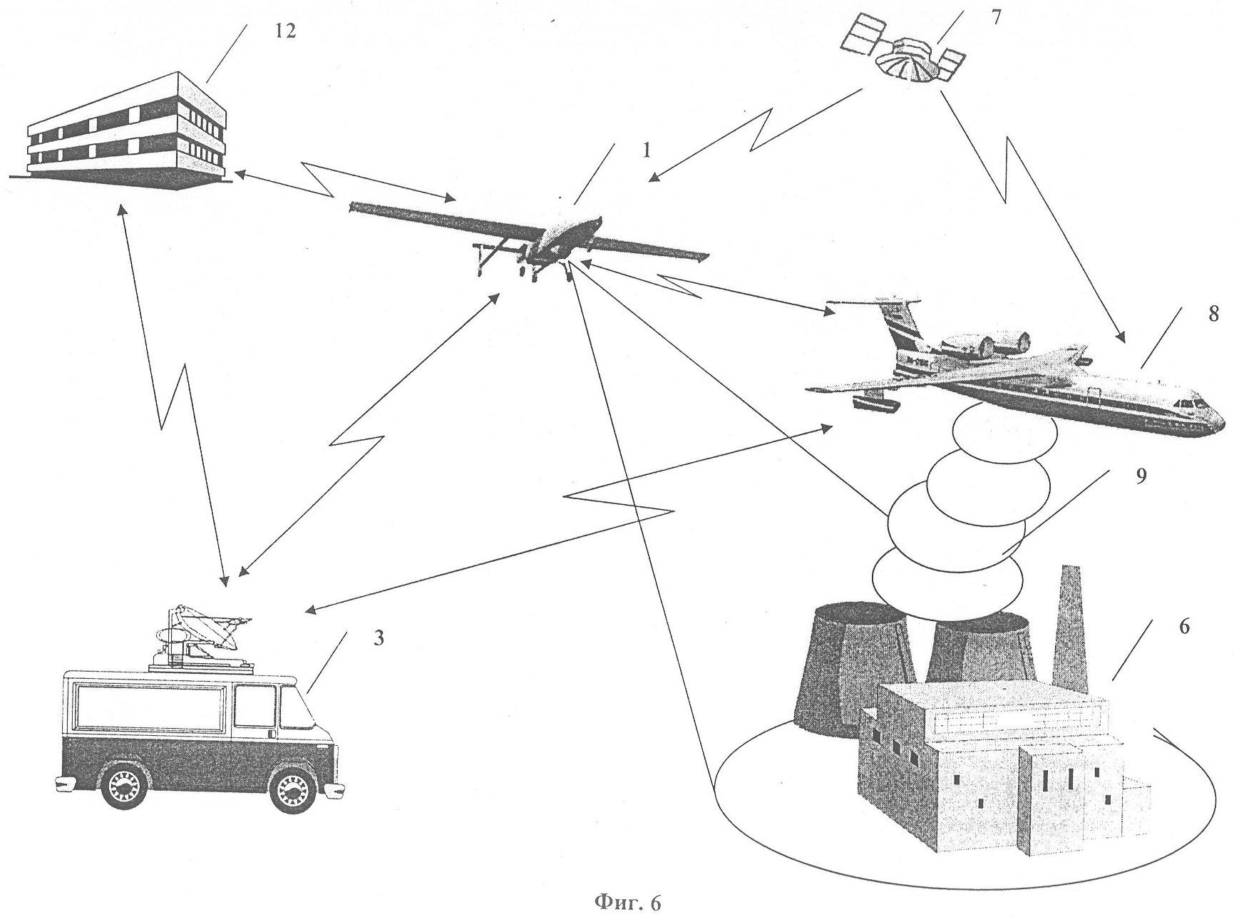1. Способ обнаружения чрезвычайной ситуации и ликвидации ее последствий, согласно которому наблюдают район возможной или реальной чрезвычайной ситуации в оптическом или инфракрасном диапазоне с беспилотного летательного аппарата и передают данные наблюдения по каналу радиосвязи,