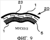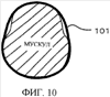 Фиг.9 – поперечное сечение определенного сдавливаемого участка мускула конечности при наложенном на этот участок устройстве для укрепления мускулов согласно второму примеру осуществления настоящего изобретения;