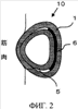 Как показано на фиг.5, ограничительная пластинка 6 может быть изогнута на участках расположения углублений 6а, и поэтому может следовать за сложной рельефной поверхностью мускул и надежно фиксировать положение трубчатой камеры 5. Поэтому, как показано на фиг.6, манжета 1 может отслеживать сложную рельефную поверхность мускулов и сохранять тесный контакт с этой поверхностью в соответствии с ее положением. Когда пользователь выполняет физические упражнения с манжетой 1, наложенной на его или ее мускулы, манжета 1 может с легкостью сохранять более тесный контакт с поверхностью мускулов, совершающих сложное движение, чем в случае цельной пластинчатой детали. Давление внутри трубчатой камеры 5 может сохраняться постоянным и даже под действием мускульных движений обеспечивается возможность приложения достаточного давления к каждому участку конечности.
