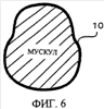 Фиг.6 – поперечное сечение определенного сдавливаемого участка мускула конечности при наложенном на этот участок устройстве для укрепления мускулов согласно первому примеру осуществления настоящего изобретения;