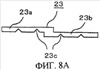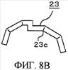 Сегментированные компоненты 23 в этом примере осуществления имеют ступенчатую форму, образуемую двумя небольшими прямоугольными сегментами 23а и 23b, соединенными один с другим на своих концах таким способом, что небольшие области, параллельные коротким сторонам прямоугольных сегментов 23а и 23b, перекрываются одна с другой, как показано на фиг.7В, но такая форма сегментов не ограничивает объема изобретения. Небольшие сегменты 23а и 23b в этом примере осуществления имеют на поверхности, обращенной к трубчатой камере 5, два углубления 23 с V-образной формы в поперечном сечении, выполненные в направлении, практически параллельном поперечному направлению манжеты 1, в продольном направлении манжеты 1, как показано на фиг.8В.