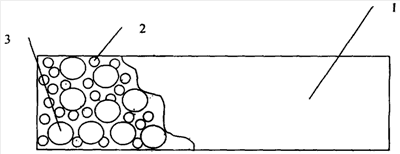 На чертеже представлен фильтровальный материал в виде трубчатого трикотажа 1, резиновой крошки 2 и эбонитовой крошки 3.