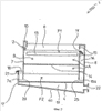 Вертикальная панель 15 крепится к противоположным длинным стенкам 5 и 6 контейнера 2, и ее нижний горизонтальный край 15а, расположенный на некотором расстоянии от верхнего листа 4 основания контейнера, образует проход (или окно) 25, через который расположенная в задней части контейнера камера 16 сообщается с его внутренней полостью А. Камера 16 сообщается с внутренней полостью А контейнера также через отверстие 11, выполненное в верхней части панели 15.