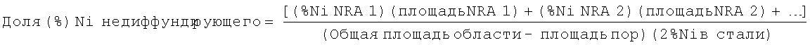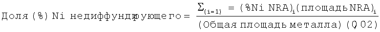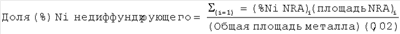 Диффузионные испытания проводили при 1120°С в течение 5 минут (1065°С), 30 минут, 60 минут и 120 минут. Ниже, в таблице 13 приведены усредненные данные для доли Ni (в %), не диффундирующего из трех областей.