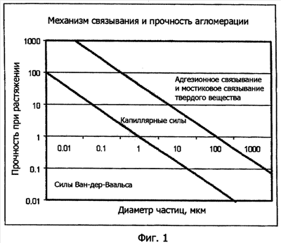 Фигура 1 представляет собой график, который демонстрирует влияние размера частиц и механизмов связывания на прочность связи между частицами;
