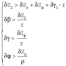 Для обеспечения надежной сборки необходимо выполнение условия адаптации: смещение исполнительного органа в процессе доориентации должно быть больше относительной погрешности смещения исполнительного органа вдоль оси Y (вокруг оси OZ) S2. Тогда справедливо неравенство: