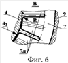 Кольцо 8 жестко закреплено в корпусе устройства, в то время как тарельчатая пружина 7 имеет возможность перемещаться в пространстве как в осевом, так и радиальном направлениях. Эти перемещения пружины 7, осуществляемые благодаря демпферу 9, необходимы для ее самоустановки по обрабатываемой винтовой поверхности винтов винтовых насосов, которая, как правило, выполняется с эксцентриситетом «е».