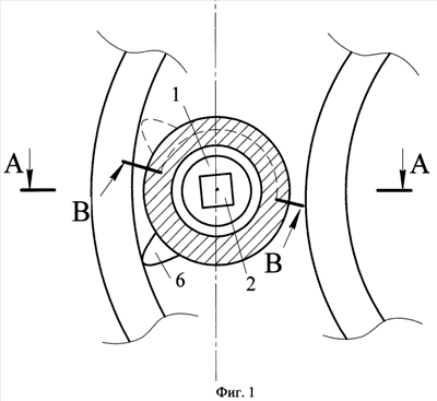 На фиг.3 показан общий вид сечения В-В в зоне контакта крышки и опорного стакана.