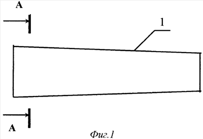 Из пиломатериалов 5 удаляют боковые части с радионуклидами 6 параллельно образующим с получением заготовок 7 с переменным прямоугольным сечением.