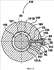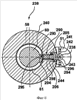 Более подробно, каждый стационарный очищающий элемент 290 содержит, при перечислении сверху вниз, в целом цилиндрическую головную часть 294 с расположенной сверху вогнутой поверхностью 296, форма которой сопряжена с формой кулачка, и удлиненный цилиндрический стержень 298 с выступающей частью 293, выполненной вдоль его дальнего конца. Поверхностный плоский выступ (не показан), расположенный поперек стороны головной части 294, действует в качестве шпонки, которая работает во взаимодействии с частью шпоночной канавки (не показана), форма которой дополняет форму шпонки и которая выполнена вдоль верхней части отверстия 204 для предотвращения вращения очищающего элемента 290 при его возвратно-поступательных движениях, тем самым поверхность 292 перемещения, выполненная на выступающей части 293, как описано выше, может удерживаться в необходимом положении. Стержень 298 уже, чем головная часть 294, так что обеспечивается наличие кольцеобразной поверхности вокруг низа головной части 294, который в процессе работы взаимодействует с сосной пружиной 244 с целью возвращения очищающего элемента 290 во втянутое положение.